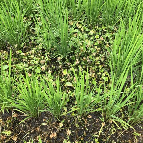稲と稲の間から緑豊かに育った雑草(;・∀・) いつもの稲に似た草ではなく水草のような・・・ものすごいのが一面に。 田んぼの土が全く見えない状態(汗) 全体じゃなくて一部ではあるのだが・・・。 すげ。。。 除草剤何度か振ったのに。 あの草にはこれ! …